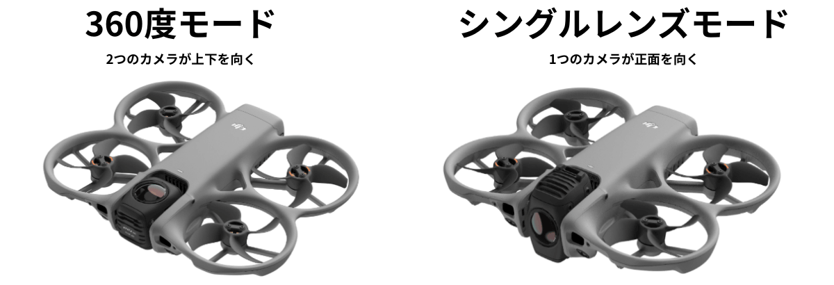 DJI Avata 360は、2つの魚眼単焦点レンズを使用しています。