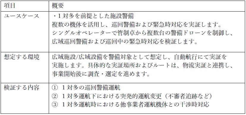 物流と警備のユースケースにおいて、複数空域における複数ドローンの同時飛行を想定した飛行実証を行う予定です。