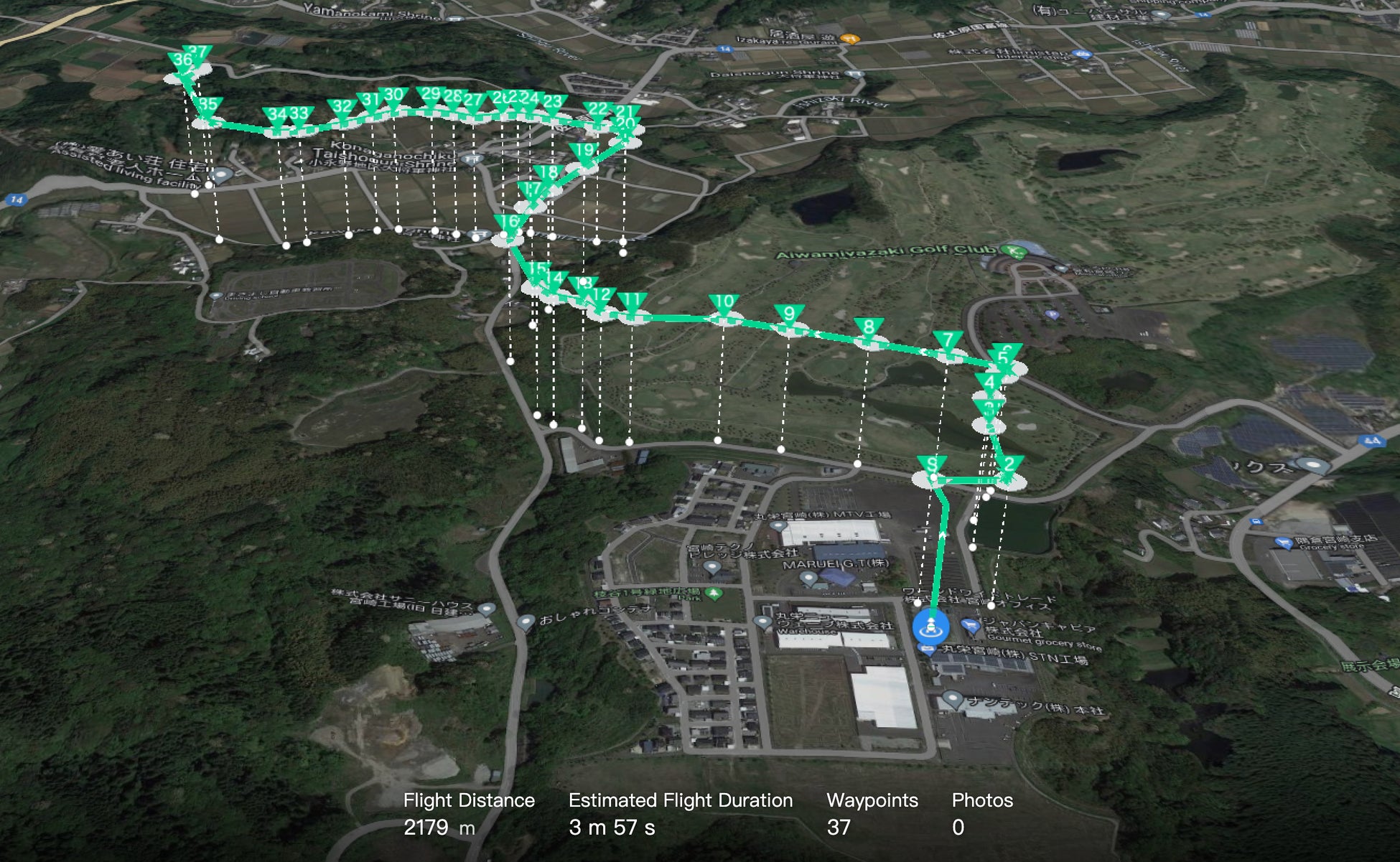 飛行ルートはDJI Flighthub2にて作成を行い、急な飛行ルートの変更にも対応ができるよう柔軟な体制をとりました。