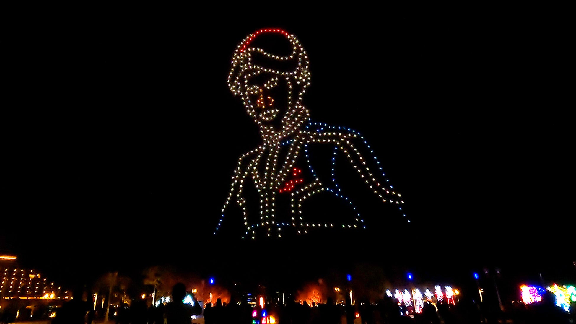 世界中にファンを持つウルトラセブン。中でもシリーズ最高傑作とも言われている神戸港を舞台にしたキングジョーとの大激戦を再現しました。また、ウルトラホーク1号の出撃シーンや、名セリフに合わせて喋るモロボシ·ダンなど、ドローンの光と音楽のシンクロによりストーリー性のある演出でドラマチックに再現されました。