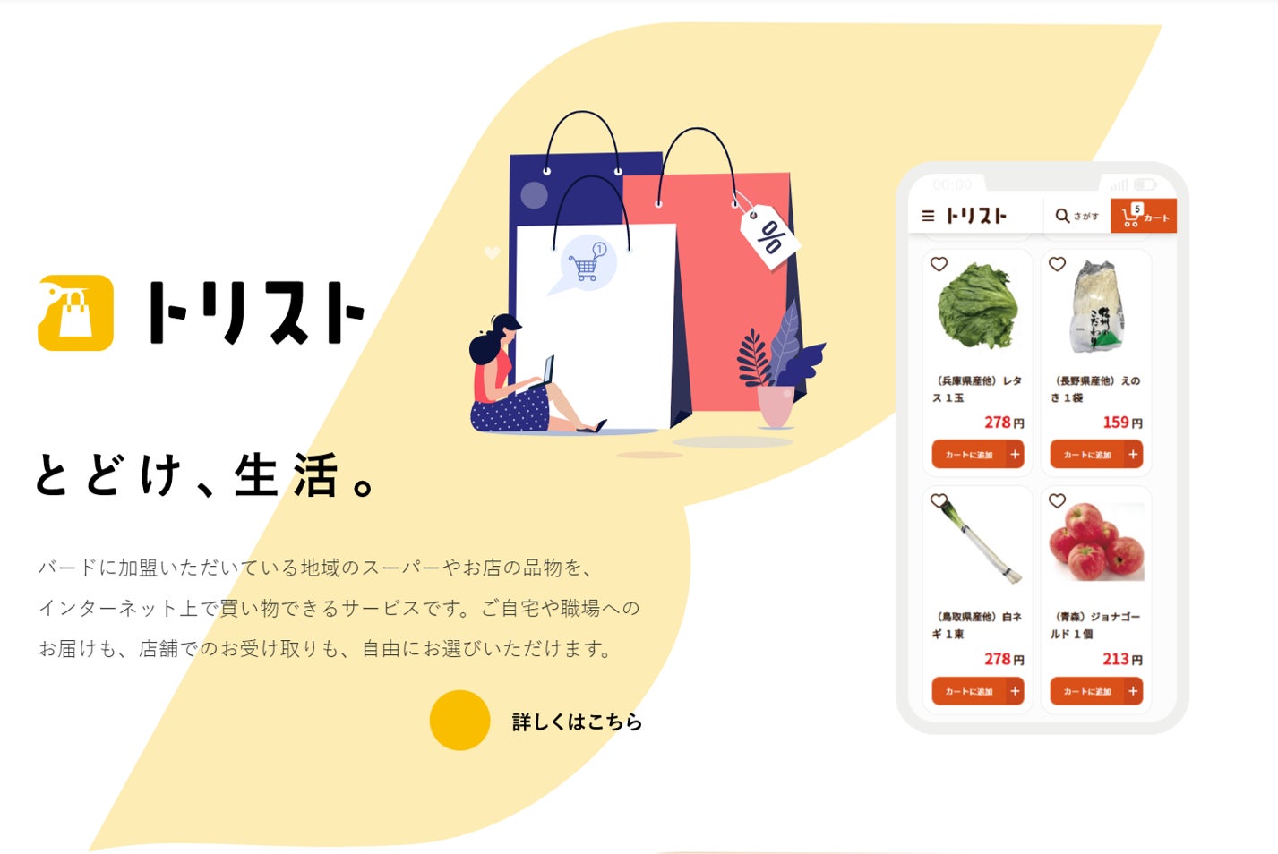 地域の店舗を取り扱うネットモール「トリスト」、フードデリバリー「トリメシ」、処方箋薬の配送「トリメディ」という3つのサービスを1つの配送網で提供する超地域密着型の生活プラットフォームです。