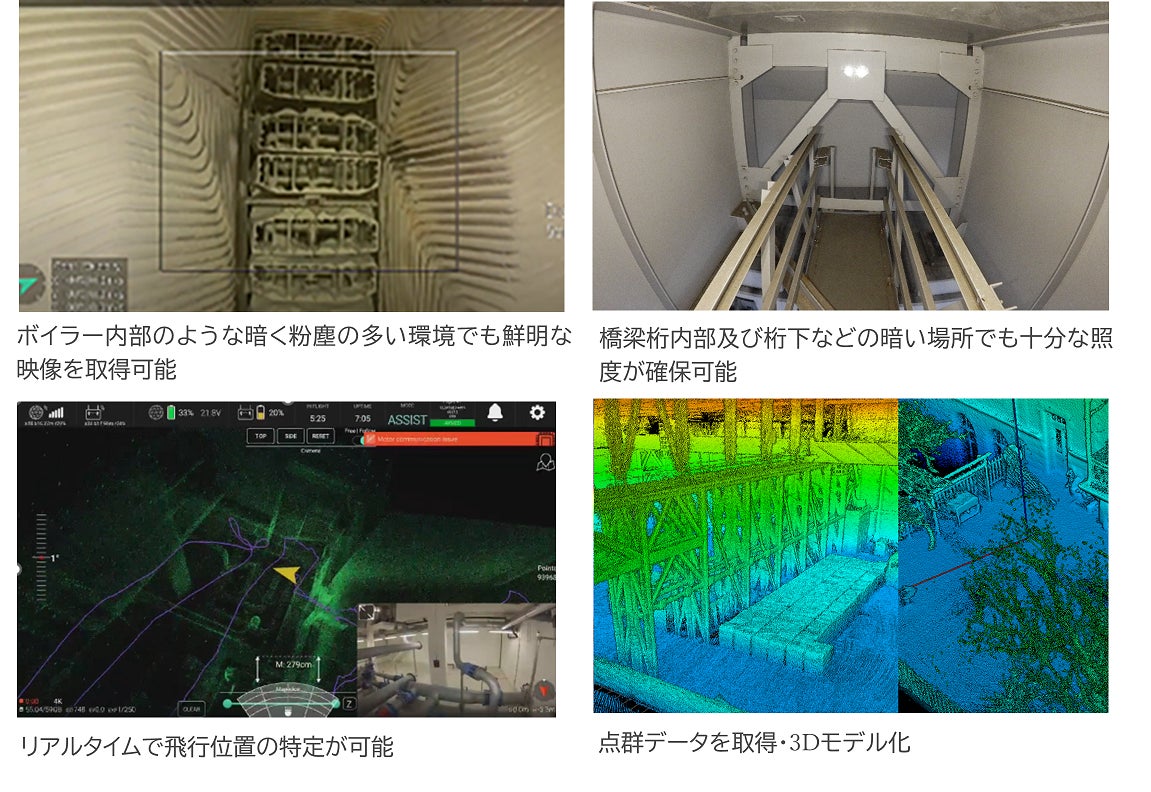 九州電力では、2019年から、火力発電所のボイラー点検・煙突内部点検・橋梁点検などに屋内点検用球体ドローン「ELIOSシリーズ」を活用し、社内での業務効率化を進めています。さらに、社外のお客様に対しても、ELIOSシリーズを活用した煙突内部点検や橋梁点検、ダクト内部点検や水路点検など様々なインフラ設備点検を実施するなど、数多くの実績をあげています。
