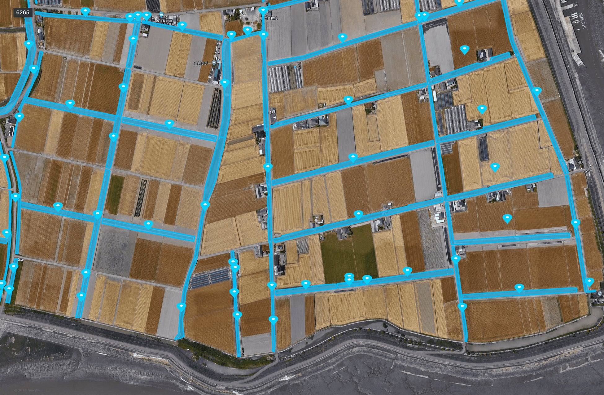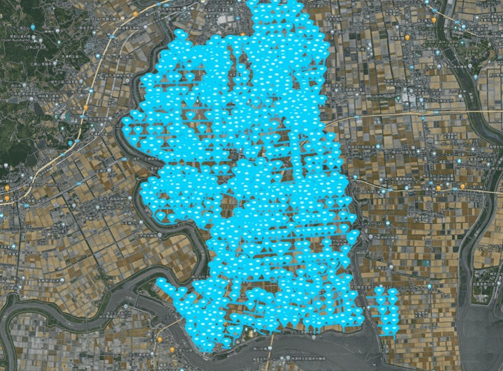 この度トルビズオンは、小城市と締結した地方創生連携協定に基づき、芦刈地区の農業用水路データを面としてトルビズオンが提供するドローン空路管理システム・ソラシェアの「S:Road」に登録し、芦刈地区の大部分に「空の道」を敷設しました。