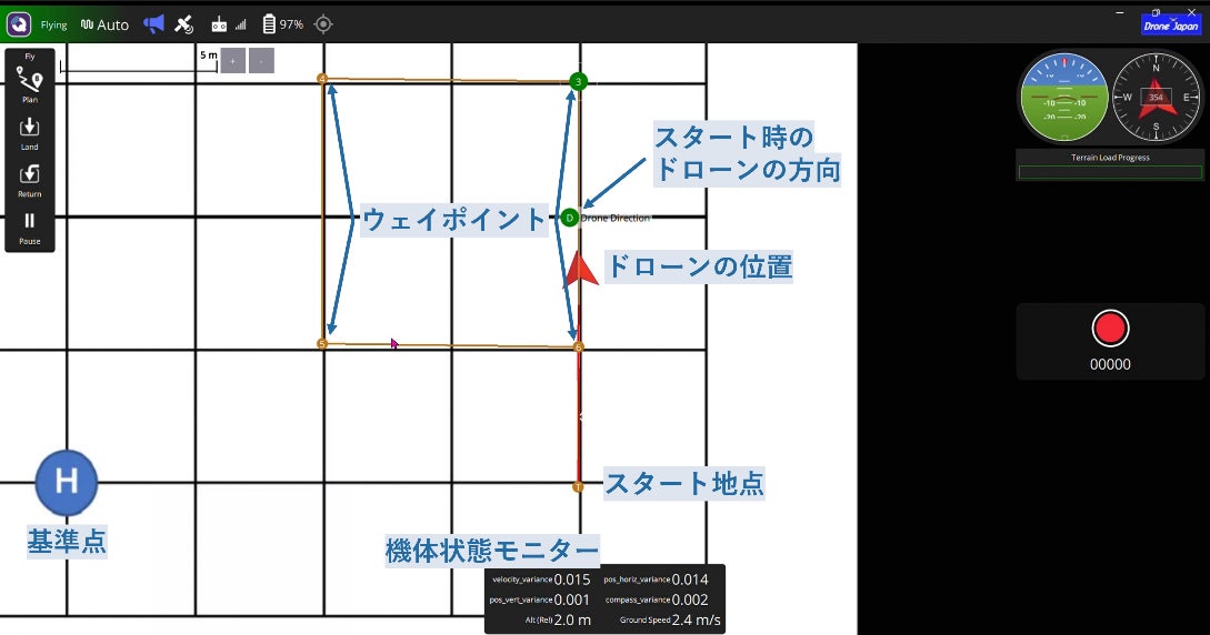 以下画像は、インドアオートミッションアプリでの自動航行イメージです。