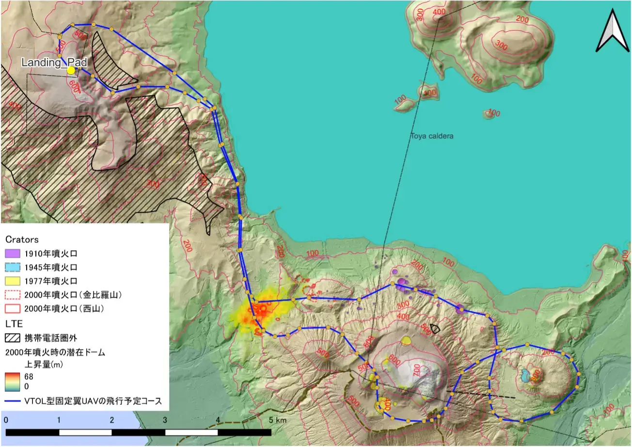 有珠山は約20〜30年周期で噴火を繰り返す活火山で、2000年の噴火では、地盤の隆起や泥流によるインフラ被害が発生し、半径5km高度10km内の航空機の飛行を制限するNOTAM(航空情報)が発行されたことで、火口周辺の詳細な空中調査が困難となりました。