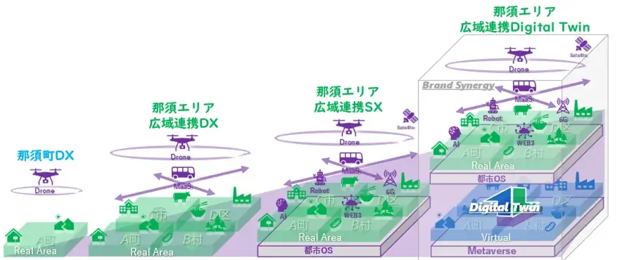 本協定では、那須町における二地域居住の促進、ドローン関連のスペシャリスト人材の育成、公共インフラ維持管理の効率化、地域DX推進による課題解決および持続可能な体制整備を推進します。また周辺の複数自治体や企業と連携した「広域エリア連携エコシステム」の構築や、自治体間および官民の枠を超えて資源やノウハウの共有・連携等相互協力・補完の実現による住民生活の向上や行政効率化を図り、持続可能な地域社会の実現に貢献します。