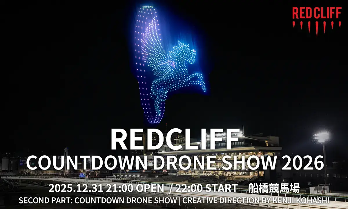 ドローンショーの企画・運営を手がける株式会社レッドクリフ(本社:東京都港区、代表取締役:佐々木 孔明、以下:レッドクリフ)は、2025年12月31日(水)から2026年1月1日(木・祝/元日)にかけて、千葉県・船橋競馬場にて、年越しイベント「REDCLIFF COUNTDOWN DRONE SHOW 2026」を開催します。