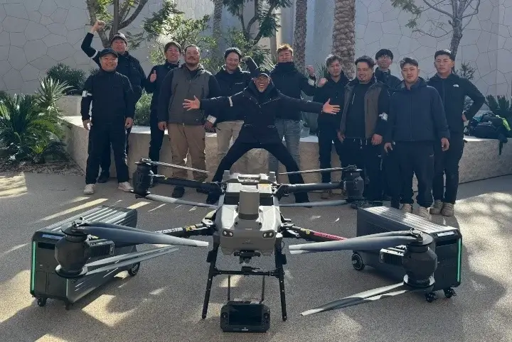以下写真は、DJI AGRAS T30&プロジェクトチームのメンバーの様子です。
