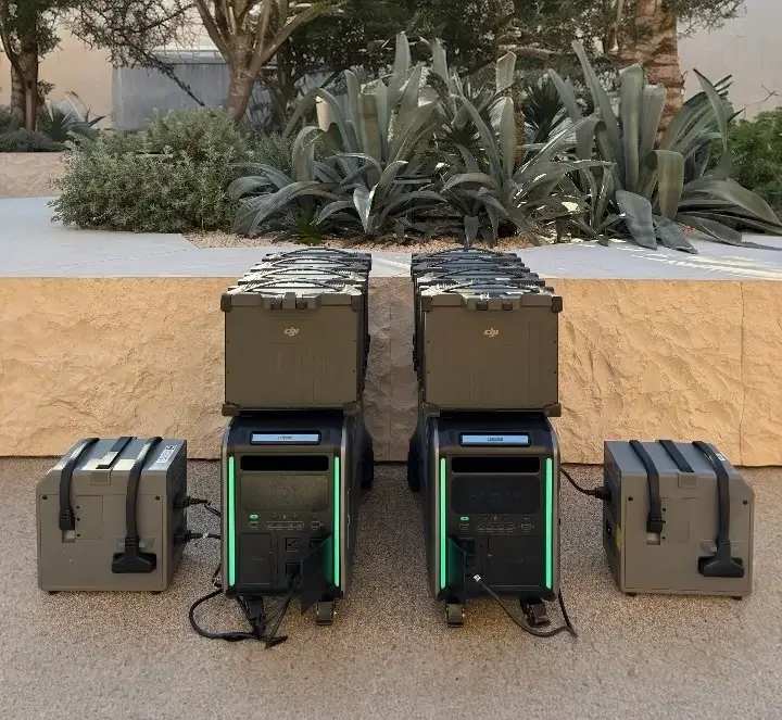 大阪万博のコンセプトである「未来社会の実験場」を体現すべく、本プロジェクトでは環境負荷の低減にも徹底してこだわりました。 ドローンの電源管理には、先端技術である「半固体蓄電池」を採用した大容量ポータブル蓄電池(SuperBaseV)を使用。200V急速充電による電源マネジメントを行い作業工程の短縮。さらにCO2排出ゼロのカーボンニュートラルを達成しました。