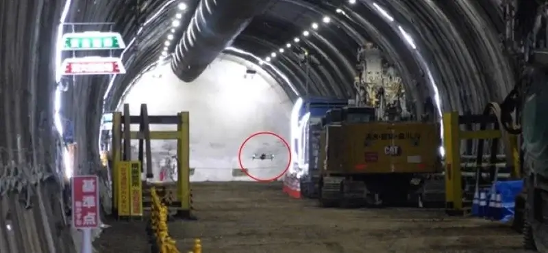 以下画像は、トンネル坑内を巡回中の「Skydio X10」の様子です。