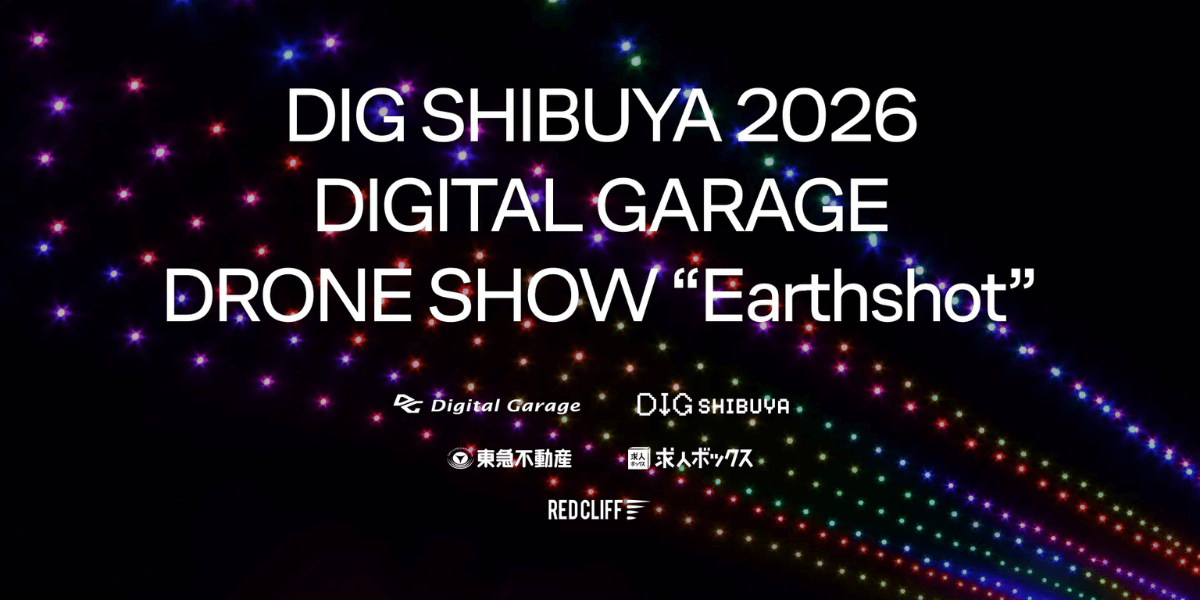 株式会社レッドクリフ(本社:東京都港区、代表取締役:佐々木 孔明、以下:レッドクリフ)は、株式会社デジタルガレージが主催する、“技術×文化×都市”を一体化した社会実装フェス「DG New Context Festival 2026」と連動して、2026年2月14日(土)に代々木公園(東京都渋谷区)で開催されるドローンショー「DIG SHIBUYA 2026 / Digital Garage DRONE SHOW “Earthshot”」(「DIG SHIBUYA 2026」オフィシャルパートナープログラム)に共催として参画し、ドローンショーのプロデュースを担当します。