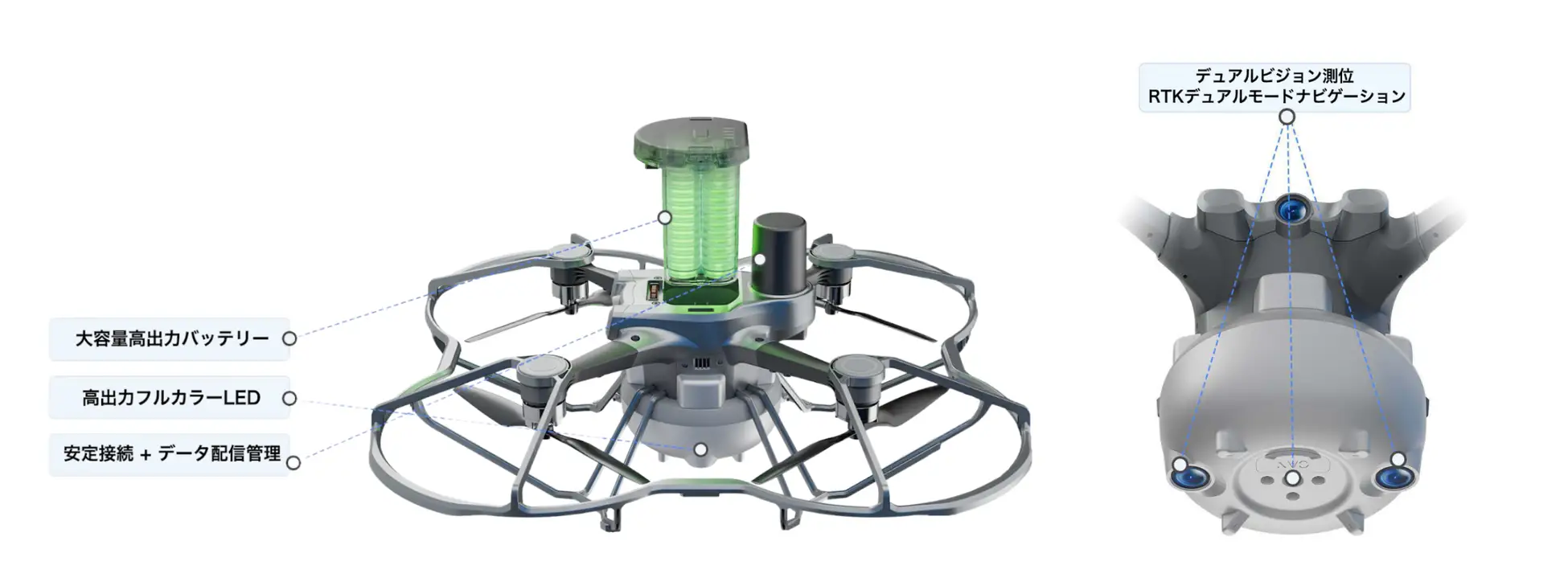 また、多数の機体が同時に飛行することを前提に、通信とデータ配信の仕組みを再設計。機体数が増えても安定した制御を維持します。
