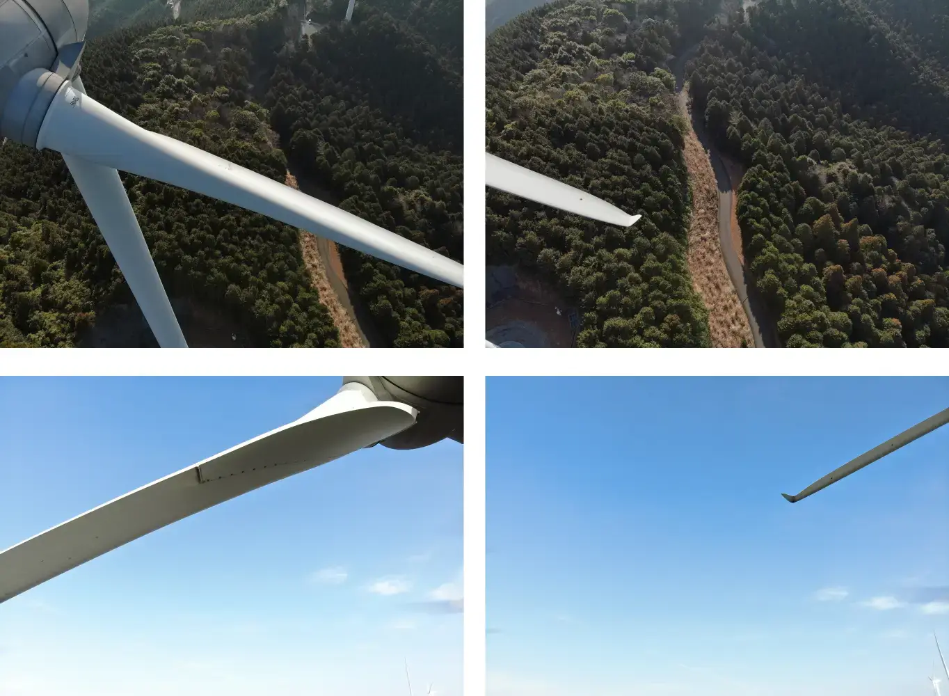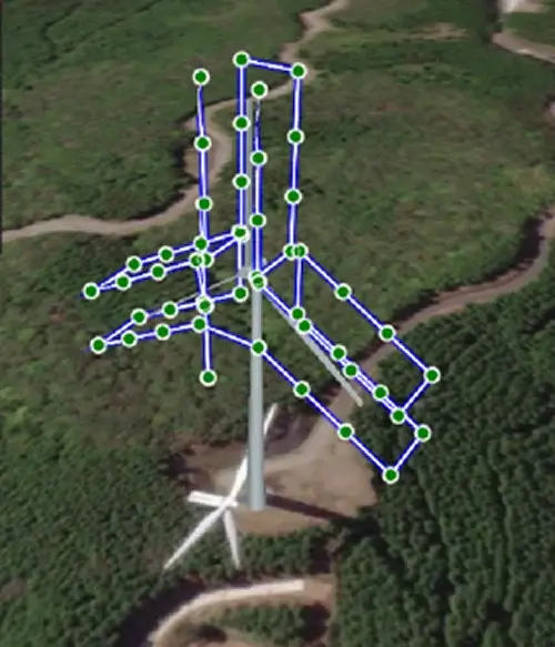 ドローンの1回のフライトで、停止中のブレード3枚すべて(0時、4時、8時方向)を自動撮影します。