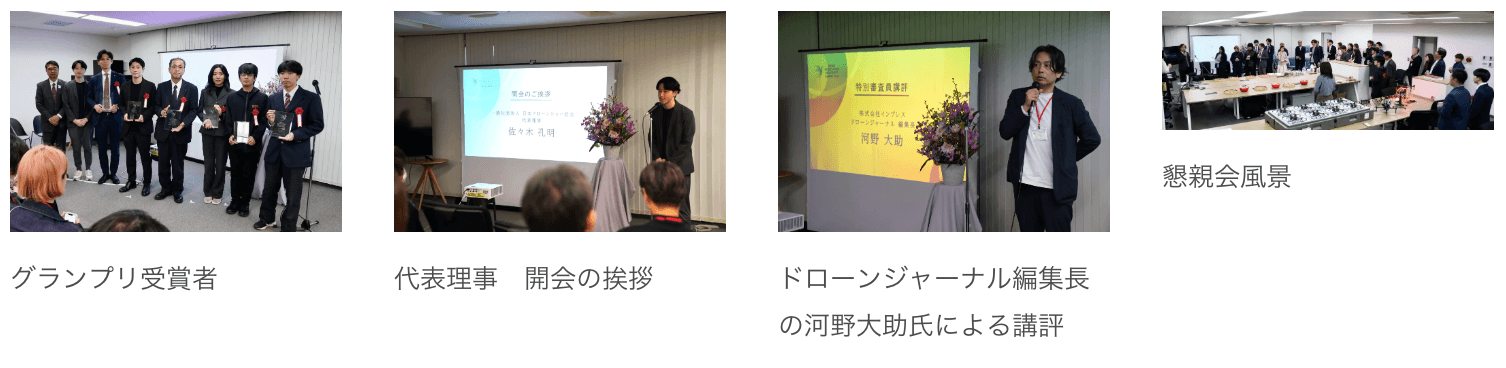 特別審査員ドローンジャーナル編集長の河野大助氏による講評や、登壇者同士の交流も行われ、業界関係者が一堂に会する場となりました。