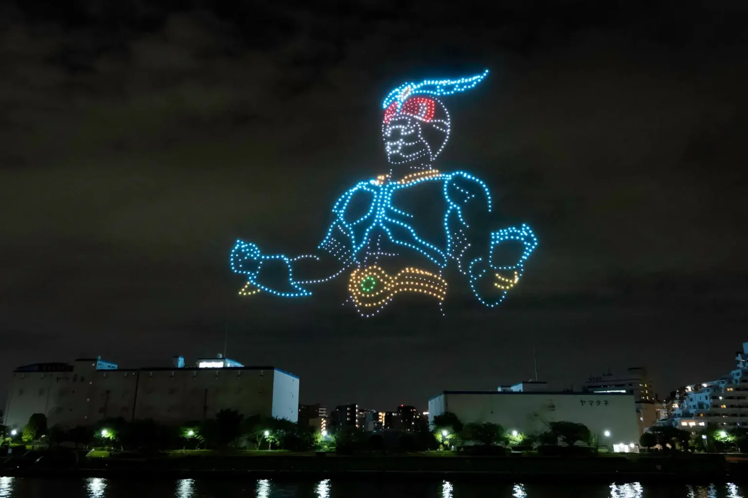 株式会社ドローンショー・ジャパン(本社:石川県金沢市、代表取締役:山本 雄貴)は、ドローンショー【「真アギト展」開催&映画『アギト-超能力戦争-』公開記念 仮面ライダーアギト Night Canvas】(主催:株式会社ドローンショー・ジャパン/東映デジマ株式会社、共催:東映株式会社/東映ビデオ株式会社)を、2026年4月24日(金)に東京・深川にて開催しました。